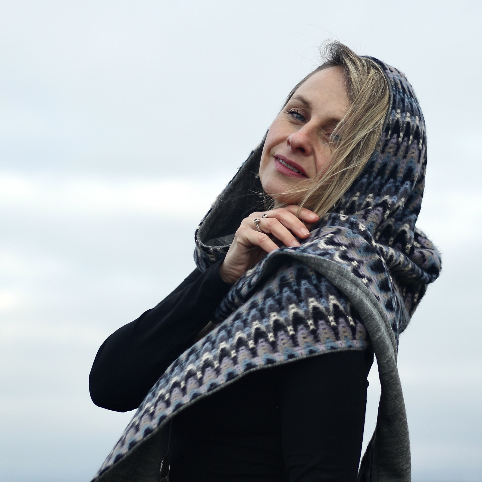 Vypodšitý kapucošál nabízí různé varianty nošení - jako kapuca s dlouhými šály. Kapuca se šály, které se omotají kolem krku a sepnou broží. Či pouze jako velký šál. Překrásně se hodí k nošení v chladnějších či chladných dnech místo čepic, ke svetrům, kabátům, sakům. Pro všední i nevšední dny. Kapucošál je OBOUSTRANNÝ.