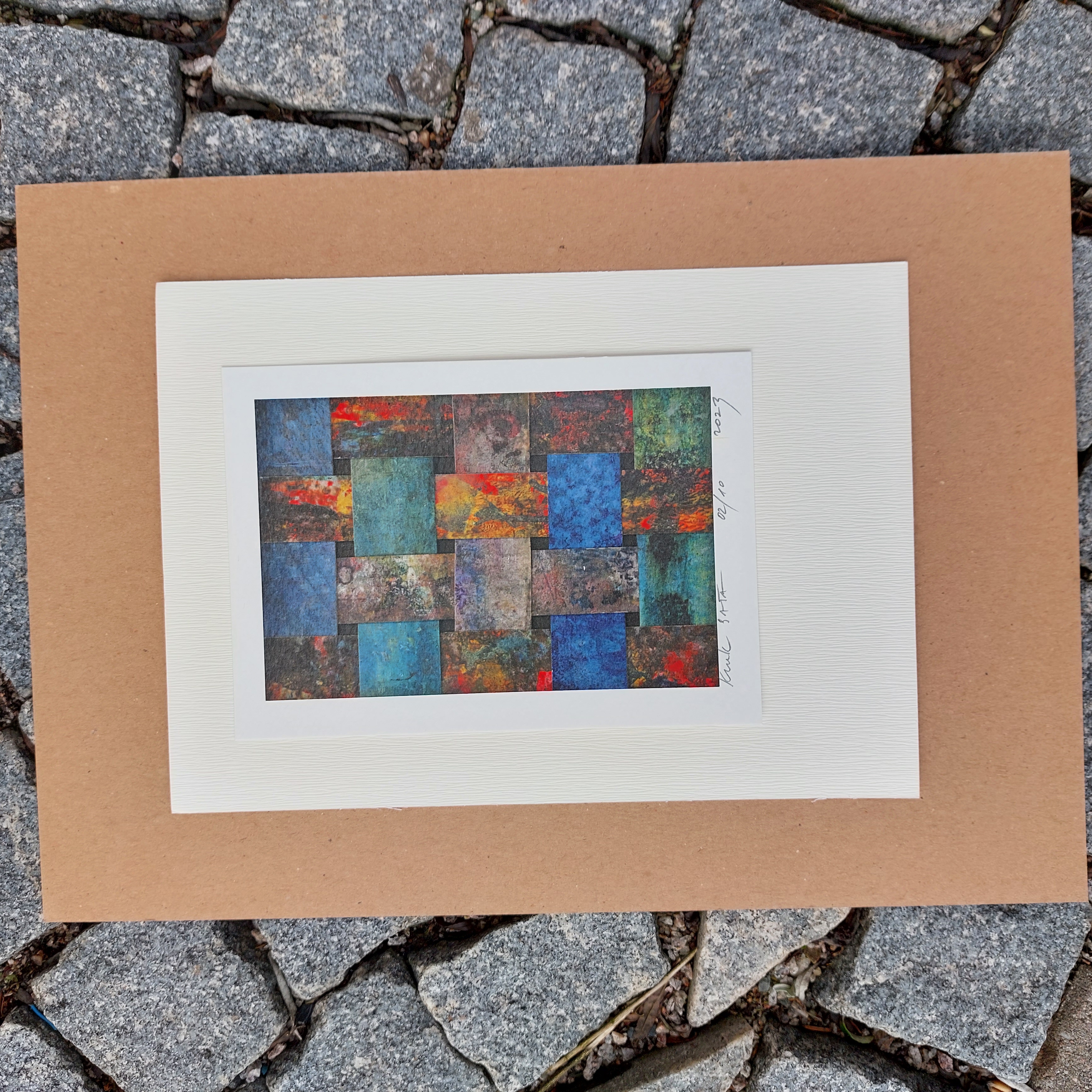 Signovaná reprodukce obrazu Mozaika na kvalitním strukturovaném papíře a lepená na barevný karton. Podepsané, číslované.