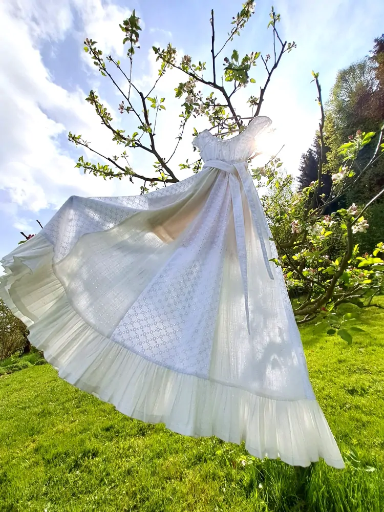 Nádherné svatební, slavnostní, vyjímečné .... dlouhé šaty v kombinaci smetanová bavlna a bílá madeira.