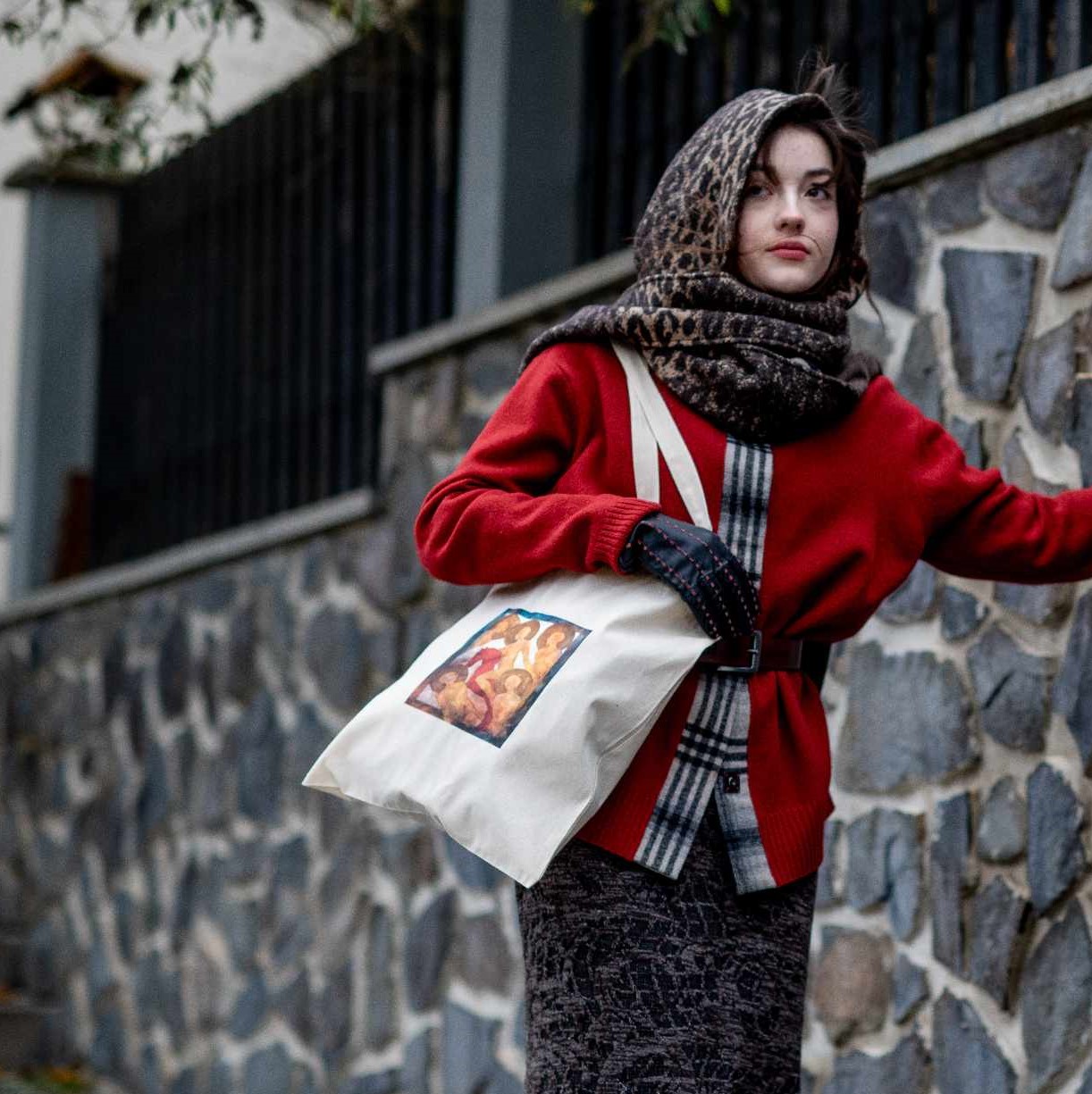 Plátěná taška s potiskem reprodukce obrazu ,,Červený kůň". Dlouhá ucha, vhodné k nošení přes rameno.