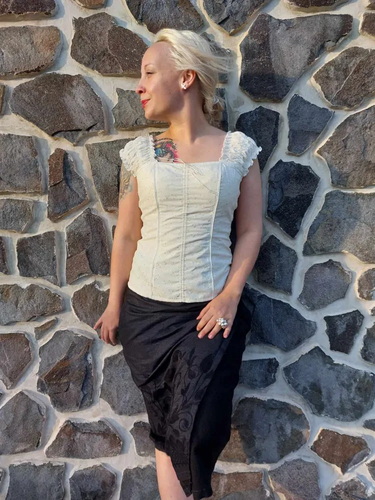 Zadní díl a ramínka živůtku jsou žabičková. Jeho přední část je rozdělena šňůrkou, která umožňuje jeho různorodost.